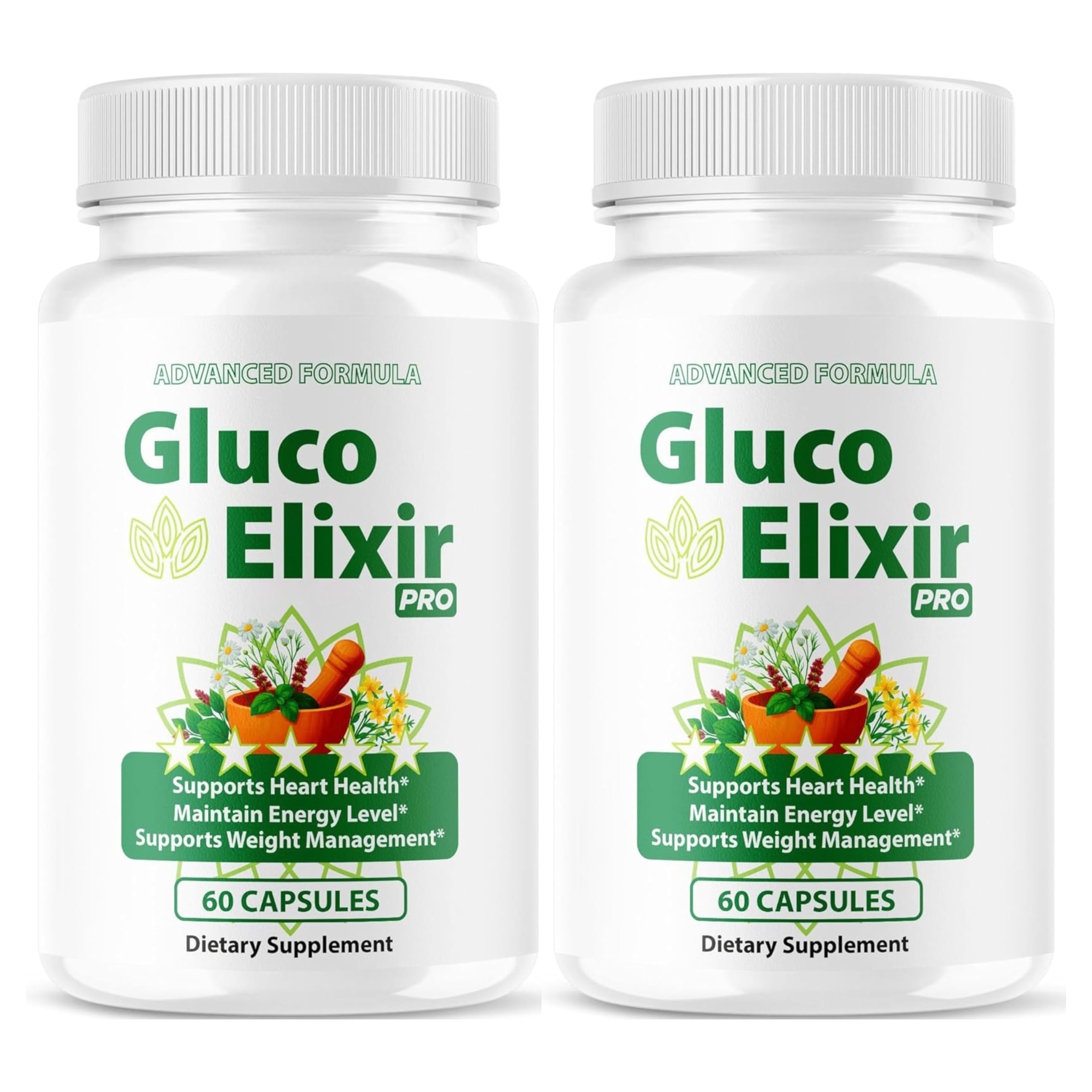 About (2 Pack) GlucoElixir Pro Capsules - Official GlucoElixir Pro Blood Health Support Advanced Formula - Maximum Strength, Natural Vitamins for Overall Health & Wellness, 120 Capsules for 2 Months