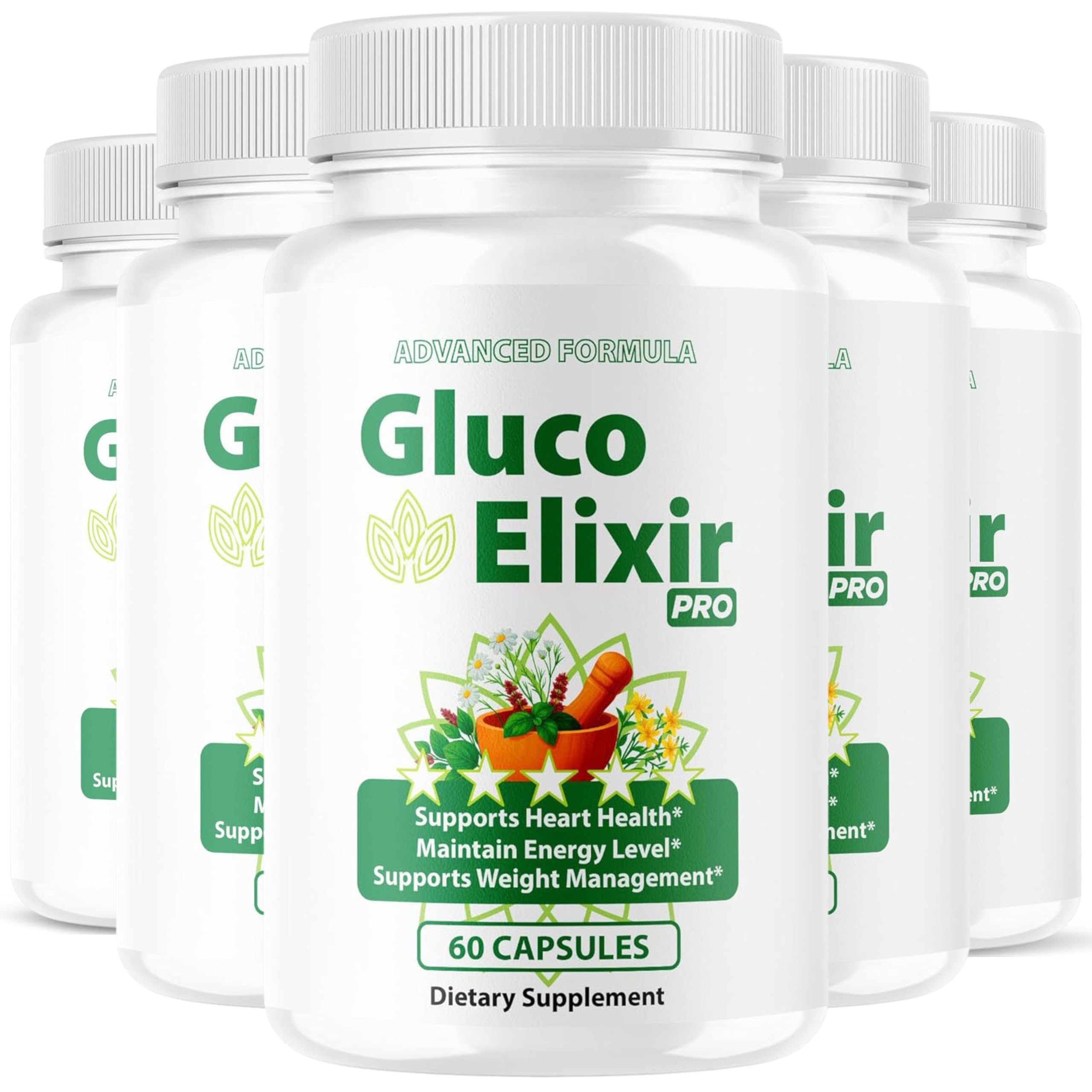 About (5 Pack) GlucoElixir Pro Capsules - Official GlucoElixir Pro Blood Health Support Advanced Formula - Maximum Strength, Natural Vitamins for Overall Health & Wellness, 300 Capsules for 5 Months