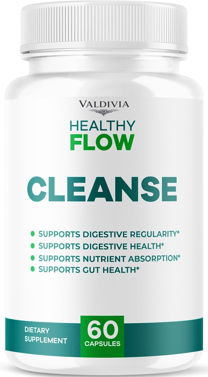 Valdivia Healthy Flow Cleanse Capsules - Official HealthyFlow Cleanse Daily Premium Support, HealthyFlowCleanse Natural Digestive Formula for Overall Health & Wellness, 60 Capsules for 1 Month is a premium capsules designed to support digestive health and gut wellness. Crafted with carefully selected natural ingredients, this advanced formula delivers targeted nutritional support you can trust. Start your wellness journey with a convenient 1-month supply. Every Valdivia product is manufactured in GMP-certified facilities in the USA and third-party tested for potency, purity, and safety.