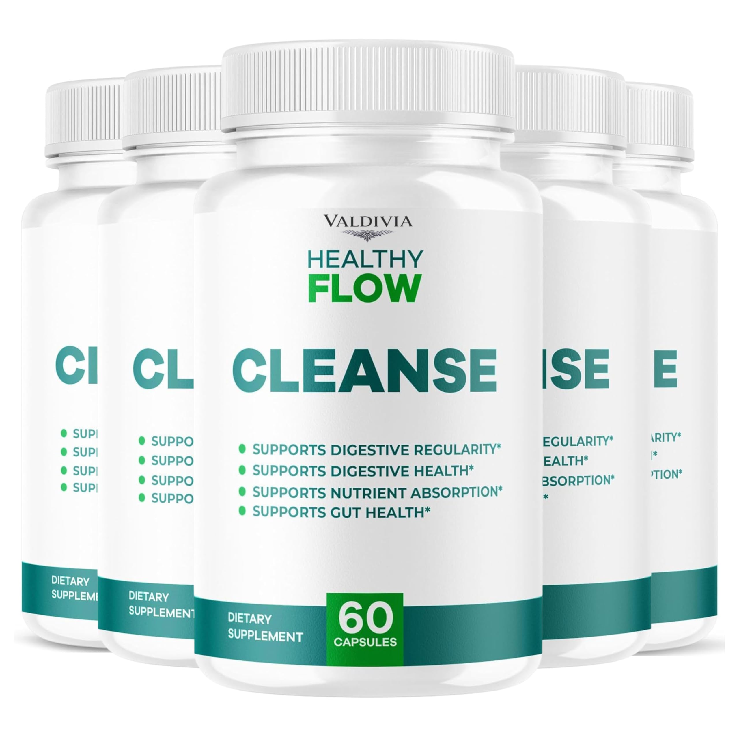 (5 Pack) Healthy Flow Cleanse Capsules - Official HealthyFlow Cleanse Daily Premium Support, HealthyFlowCleanse Natural Digestive Formula for Overall Health & Wellness, 300 Capsules for 5 Months is a premium capsules designed to support digestive health and gut wellness. Crafted with carefully selected natural ingredients, this advanced formula delivers targeted nutritional support you can trust. This 5-month supply offers our best value, ensuring uninterrupted support for your wellness journey. Every Valdivia product is manufactured in GMP-certified facilities in the USA and third-party tested for potency, purity, and safety.
