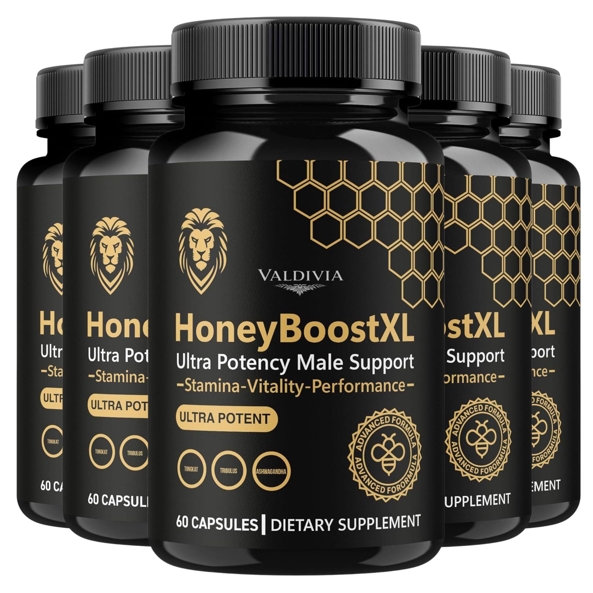 (5 Pack) Honey Boost XL Capsules - Official HoneyBoost XL Advanced Premium Supplement for Men Support - Maximum Strength, Natural HoneyBoostXL for Overall Health & Wellness, 300 Capsules for 5 Months is a premium capsules designed to support male vitality, energy, and peak performance. Crafted with carefully selected natural ingredients, this advanced formula delivers targeted nutritional support you can trust. This 5-month supply offers our best value, ensuring uninterrupted support for your wellness journey. Every Valdivia product is manufactured in GMP-certified facilities in the USA and third-party tested for potency, purity, and safety.