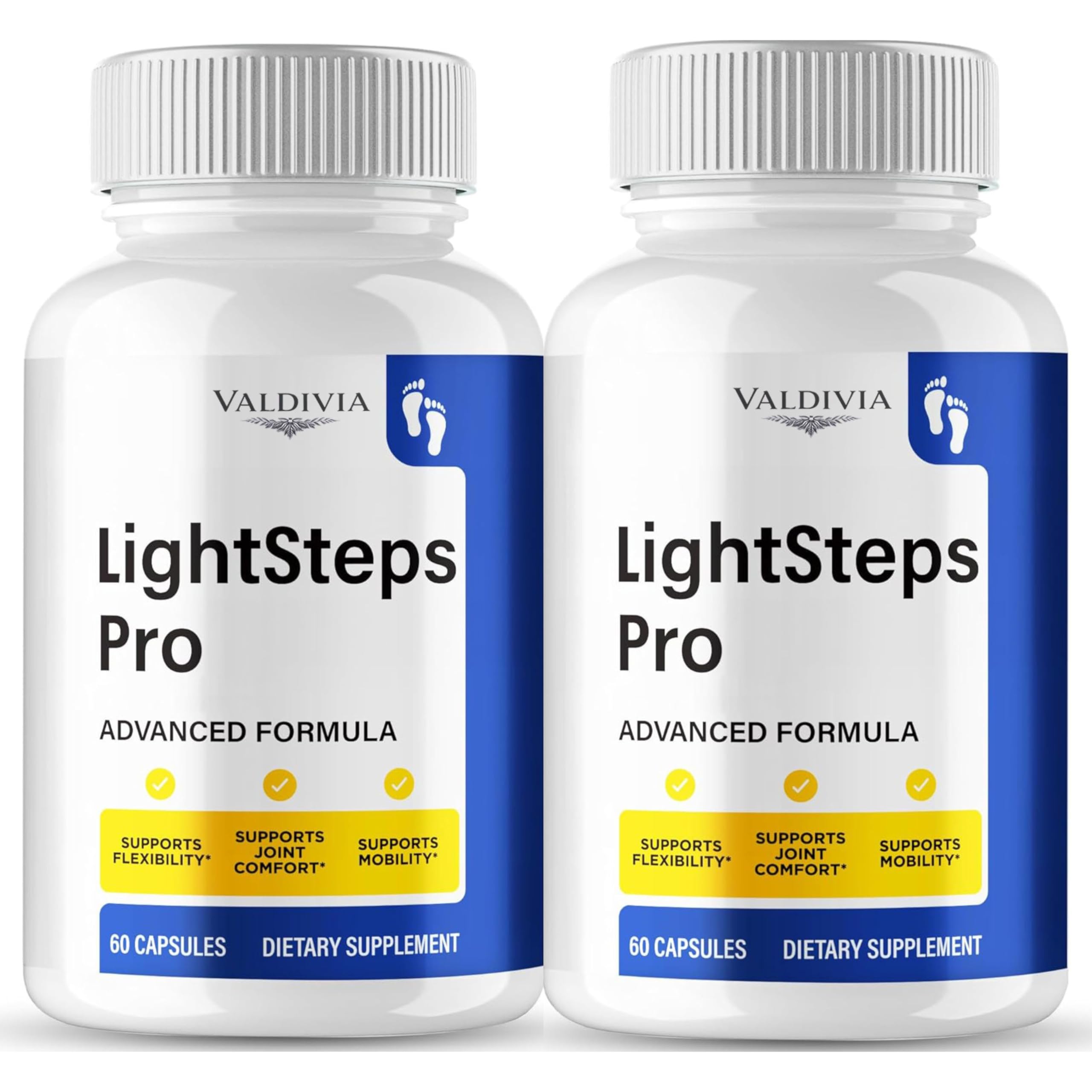 (2 Pack) LightSteps Pro Capsules, Official LightSteps Pro Supplement - Maximum Strength, All Natural Formula Fortify Bones, Movement & Bolster Flexibility, LightStepsPro Support Reviews - 120 Capsules is a premium capsules designed to support joint comfort, mobility, and flexibility. Crafted with carefully selected natural ingredients, this advanced formula delivers targeted nutritional support you can trust. This 2-month supply ensures you stay consistent with your daily health regimen. Every Valdivia product is manufactured in GMP-certified facilities in the USA and third-party tested for potency, purity, and safety.